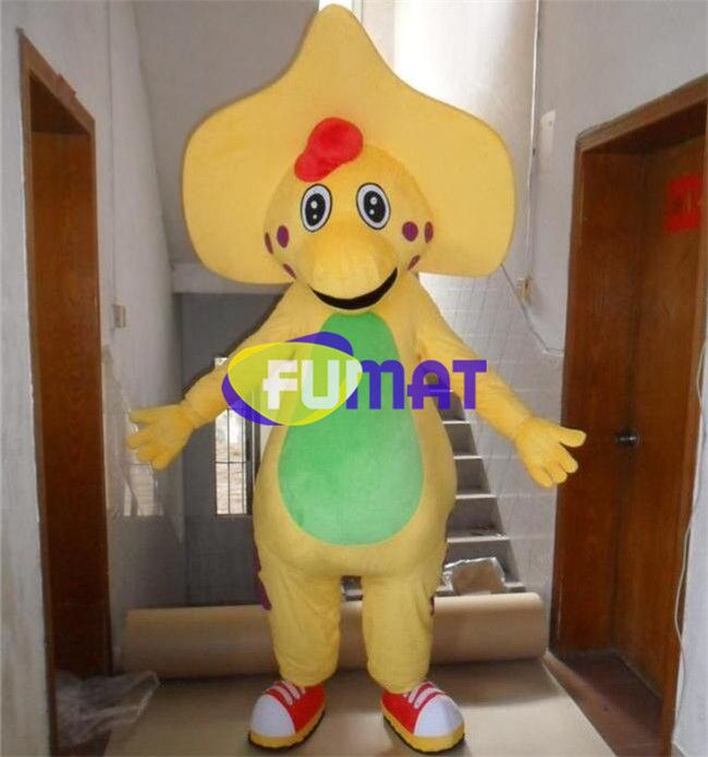 Fumat Barney Costumes Yellow Dinosaur Mascot Costumes Adult Size Barney Cartoon Costume Dress For Christmas Carnival Party Customization